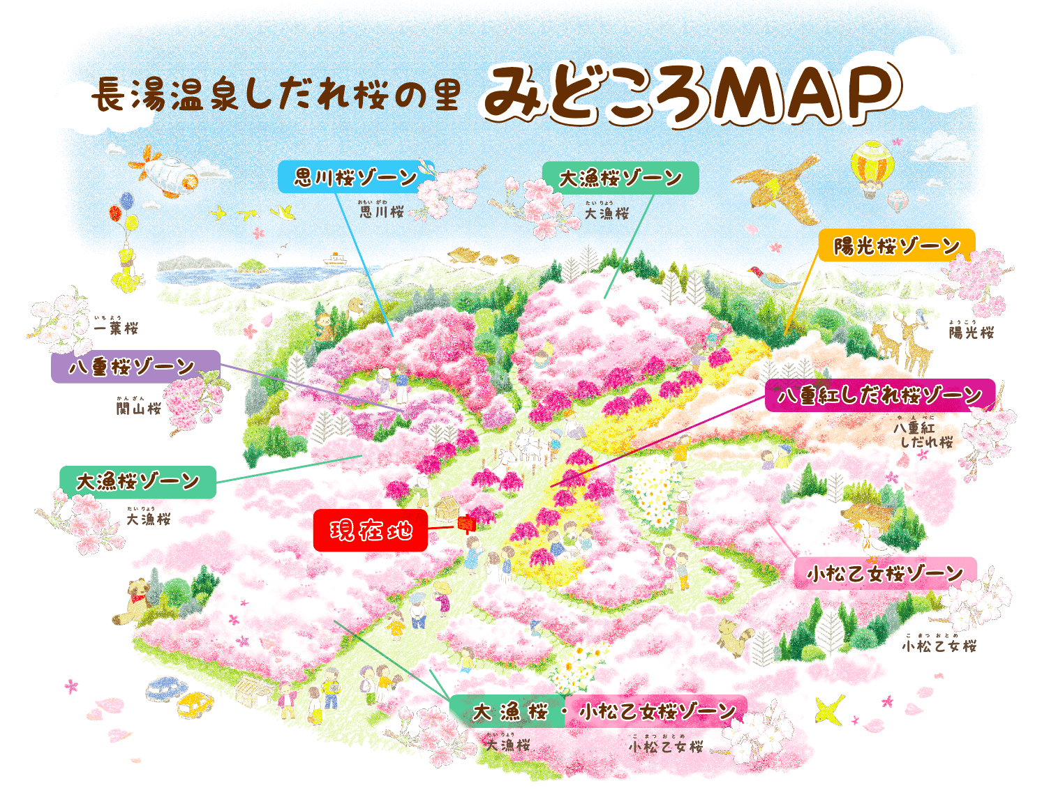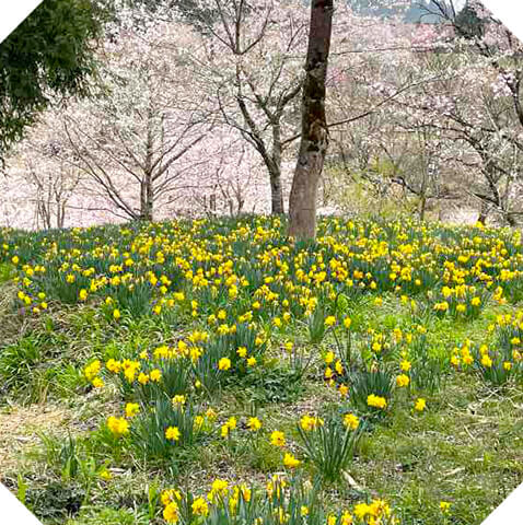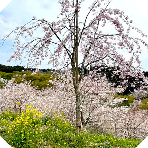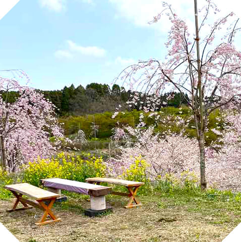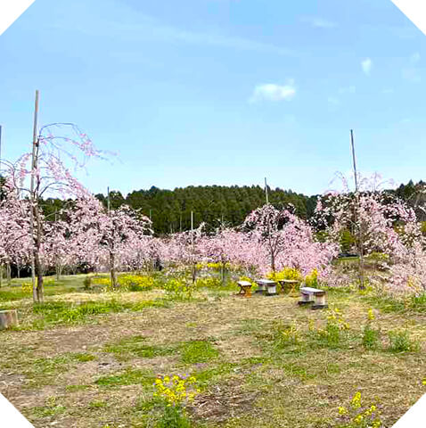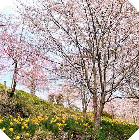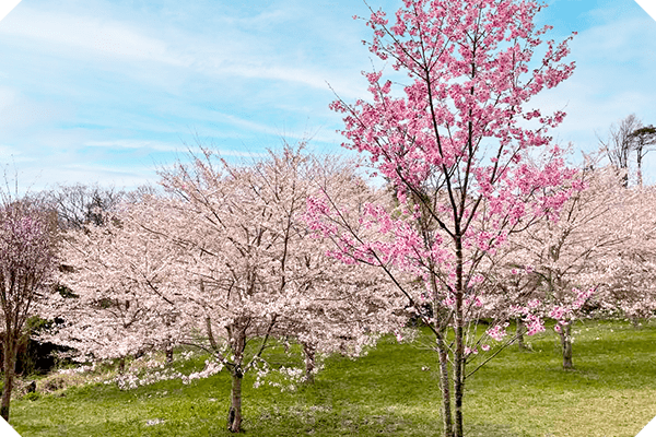 | 桜の種類 | 6種類(大漁桜・コマツオトメ・八重紅しだれ・ヨウコウザクラ・オモイカワザクラ・八重桜)その他、スイセン・菜の花・ツツジもあり |