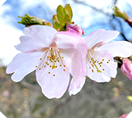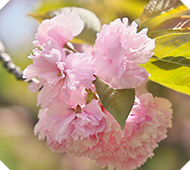 大漁桜 → 新緑 コマツオトメ → 新緑 陽光桜 → 新緑 八重紅しだれ → 新緑 オモイカワザクラ → 八分咲 八重桜 → 咲き始め |